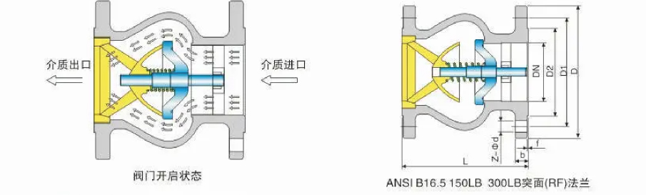 6、閥瓣前后有導向支撐不受安裝位置限制安裝與管道任何位置,垂直安裝與水平安裝均可。